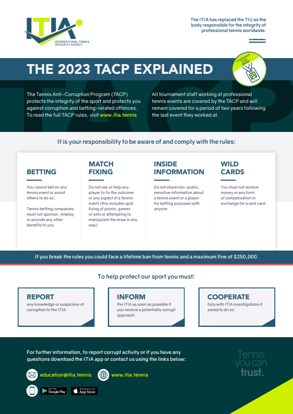 The ITIA safeguards the integrity of professional tennis worldwide.